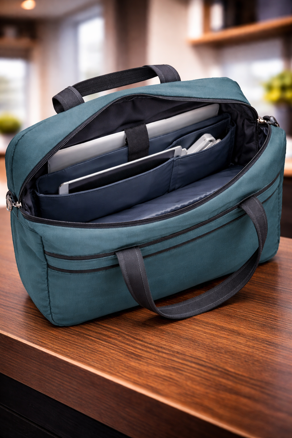 Crafted from premium-quality fabric, this conference laptop bag offers excellent durability for daily office use and frequent travel. The padded main compartment securely fits standard office laptops, protecting devices from scratches and minor impacts. Inside, organized storage sections allow users to neatly arrange documents, chargers, power banks, and essential accessories.