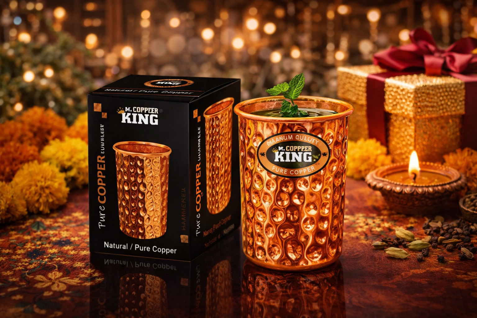 the Copper King Gift Tumbler can be customized with company logos, festive sleeves, or branded packaging to enhance brand recall. Its premium finish and traditional appeal make it suitable for Diwali celebrations, annual corporate events, employee appreciation programs, and client gifting campaigns. Unlike generic gifts, this copper tumbler offers daily usability, ensuring your brand remains visible long after the festive season ends. With durable construction and elegant presentation, it represents a thoughtful blend of wellness, culture, and premium corporate gifting value.