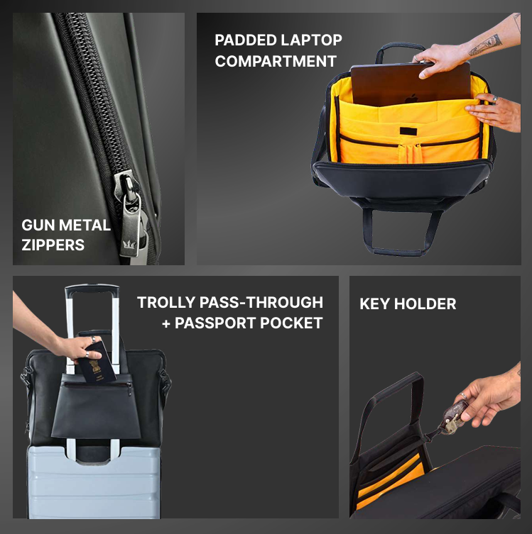 The tough gunmetal zippers deliver smooth and secure access.