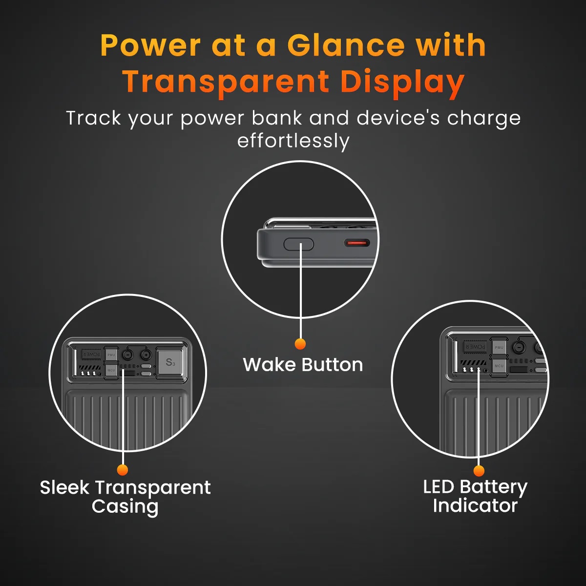 - LED Battery Indicator:This 10000 mAh Fast charging Power bank has a transparent plastic casing with an LED indicator, keeping you informed about the power bank and your device’s charge.